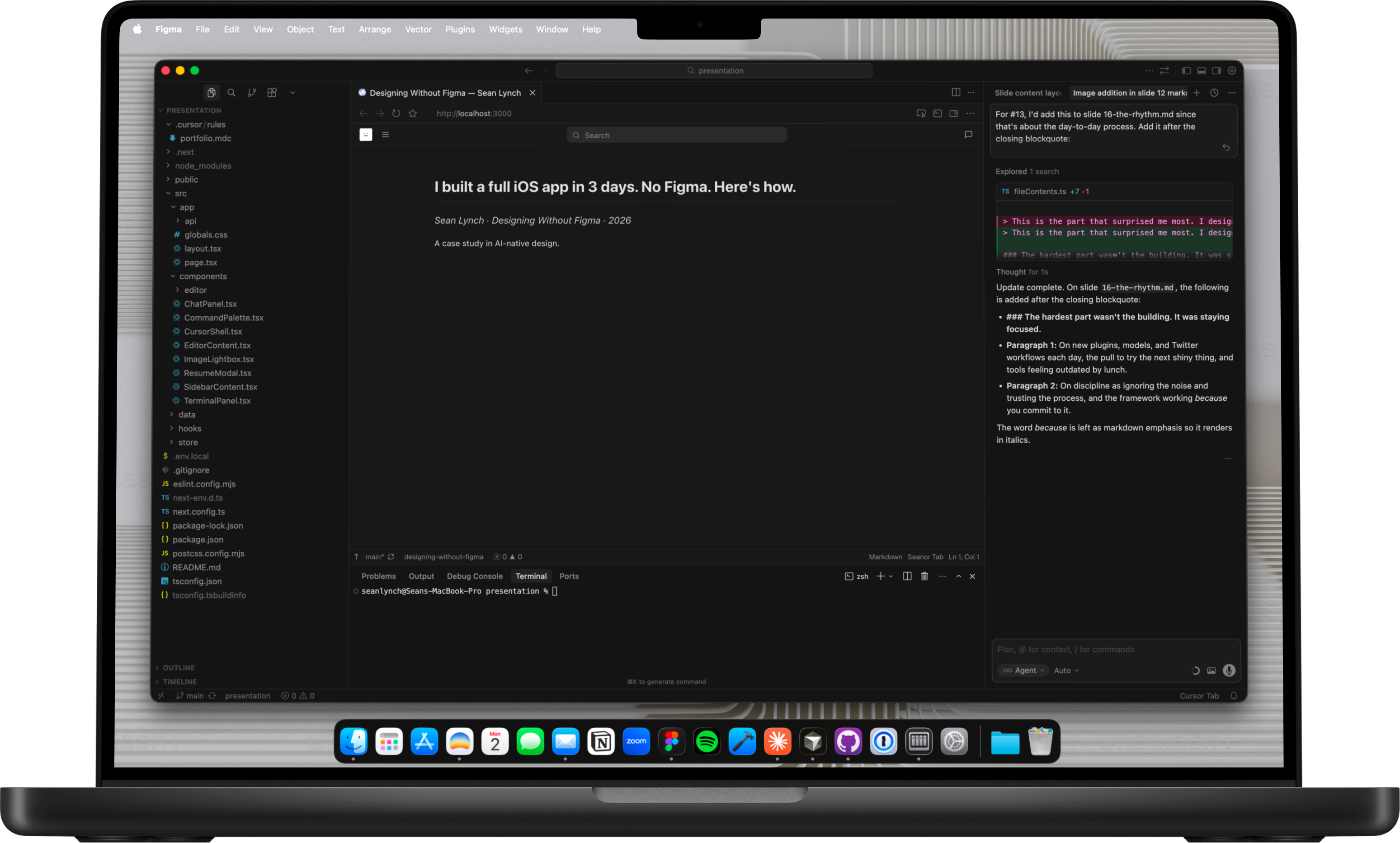 I built a full iOS app in 3 days. No Figma. Here's how. Sean Lynch · Designing Without Figma · 2026 A case study in AI-native design.